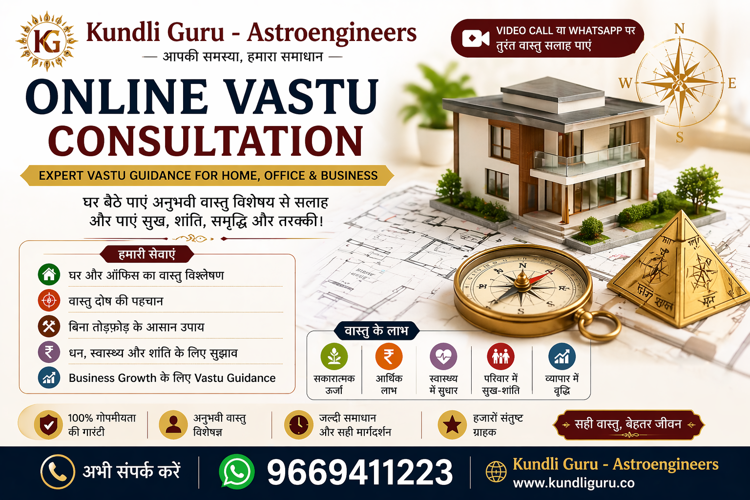 The success of your business begins with the energy in your office or workplace. With Kundliguru's expert Vastu consultations, we guide you on how to arrange your office or commercial space to attract success, financial growth, and positive opportunities. Small adjustments like the direction of your desk or the placement of important equipment can make a significant difference.